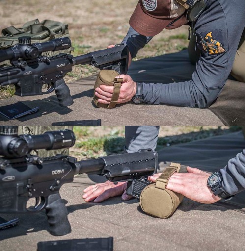- Стрічка, що дозволяє регулювати, стискати та кріпити сумку до ложа зброї