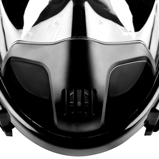 Його форма і силіконовий комір, який дуже легко всмоктується, ідеально облягають обличчя, а завдяки великому плоскому склу збільшується перспектива і видимість під водою. Маску доповнює повністю герметична складана пряма труба найвищої якості, з двома запірними клапанами і двома каналами для вдиху і видиху. Це рішення запобігає потраплянню води в маску під час занурення. Клапани автоматично піднімаються, коли вся маска занурюється під поверхню води, блокуючи доступ до внутрішньої частини повної маски. Важливо те, що тепле повітря, яким ми дихаємо під час плавання, виходить назовні, тому вікна повної маски не запотівають.