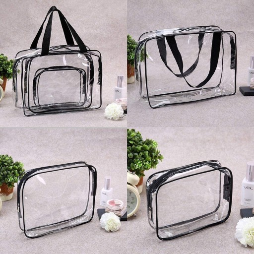 Надзвичайно місткі органайзери для косметики. Набір із трьох косметичок різного розміру, виготовлених із прозорого ПВХ пластику, який є водонепроникним і надзвичайно простим у чищенні.