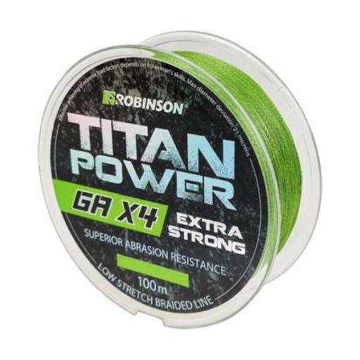 Дуже міцна плетінка для універсального використання, для спінінга та донної риболовлі. Низька розтяжність гарантує надійний гачок і безпечну посадку риби. Titan Power GA X4 не вбирає сили і довго зберігає свої первинні властивості.