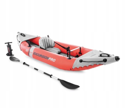 Байдарка EXCURSION PRO від INTEX одномісна, в комплект входять весла і насос. Призначений для поїздок на риболовлю. Оснащений тримачами для вудок і тримачем для додаткового обладнання, наприклад, GPS або ехозонда.