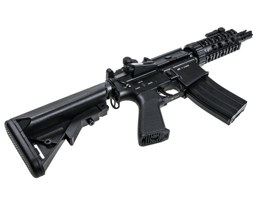 Завдяки висувному прикладу з протиковзким текстурованим затильником можна регулювати довжину репліки відповідно до комплекції та вподобань стрільця. Штатний пламегасник кріпиться на ліву різьбу 14 мм, що дозволяє підключити на його місце шумоглушник.