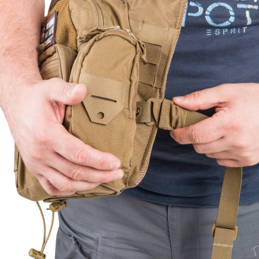 EDC Side Bag - це компактна універсальна сумка, яка дозволяє носити повсякденне спорядження. Має містке основне відділення для великих речей і невелику передню кишеню з внутрішнім органайзером. З одного боку є кишеня для дрібниць, а з іншого - універсальний тримач для пляшки з водою або куртки, регулюється за допомогою гумового шнурка. Лазерна вирізана система MOLLE/PALS спереду дозволяє встановити додаткові кишені або інше обладнання. EDC Side Bag® також має приховану кишеню, що дозволяє носити повнорозмірний пістолет або револьвер. Цю кишеню також можна використовувати для кріплення будь-яких елементів універсальної системи вставок