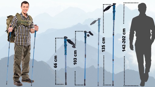 - ✅ Завдяки телескопічній конструкції палиць їх можна регулювати в діапазоні від 66 до 135 см. Це означає, що палиці підійдуть будь-якій людині зростом від 142 до 202 см.