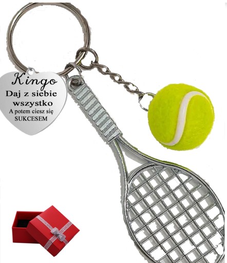 КРАСИВИЙ БРЕЛОК З М'ЯЧЕМ, РАКЕТОМ ТА ГРАВІЮВАННЯМ