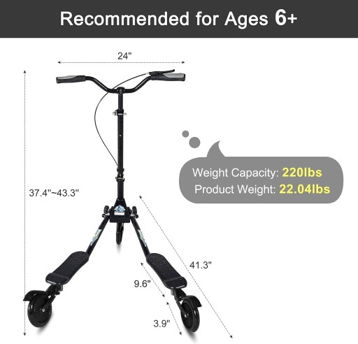 - Регульована висота: цей самокат має регульоване кермо, яке дозволяє регулювати висоту від 37,4 до 43,3 дюйма. Конструкція 3-колісного дріфту підвищує стабільність цього скутера, а його поворот на 180 градусів дозволяє легко передавати контроль. Отримайте подарунок на Різдво чи Хеллоуїн для своєї дитини або дітей члена родини чи друга, і ви придбаєте більше дружби та доброї волі