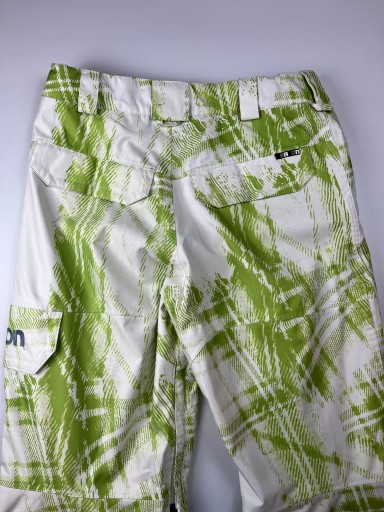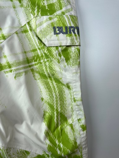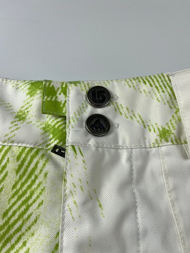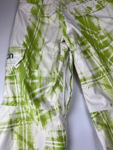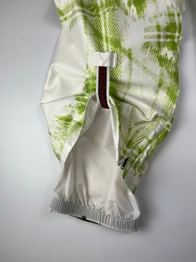 - Штани для сноуборду (poucher panta) білого кольору з ніжним зеленим малюнком. Застібається на талії двома фірмовими кнопками і блискавкою, додатково регулюється липучками з двох сторін. Штани мають водонепроникну підкладку. Мають багато функціональних кишень. Вони легкі, без додаткового утеплювача.