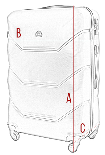 - зовнішній розмір включає всі виступаючі елементи валізи: колеса, ніжки, кодовий замок, ручки для перенесення, але не включає візуальну раму.