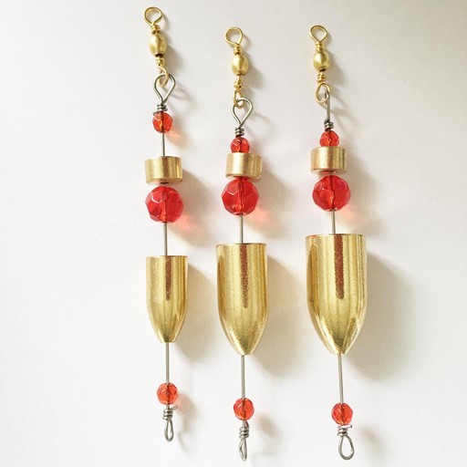 Кожен набір включає латунне грузило, 3 червоні скляні намистини, латунний бустер і латунний вертлюг.