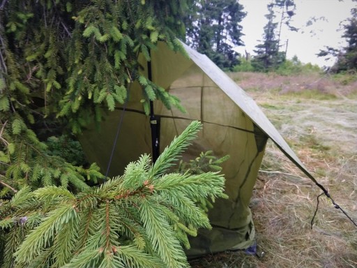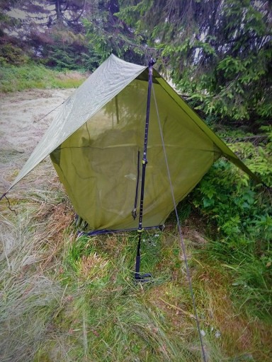 Цікаво, що намет можна використовувати самостійно, якщо, наприклад, ми забули гамак або не взяли його з собою. Все, що нам знадобиться, це трекінгові палиці або добре зрізані гілки, натягнуті розтяжками та прикріплені до землі шпильками. Дах захищає від негоди, сітка - від маленьких непроханих гостей, а водонепроникна підлога забезпечує комфорт.