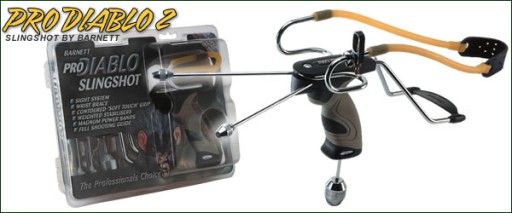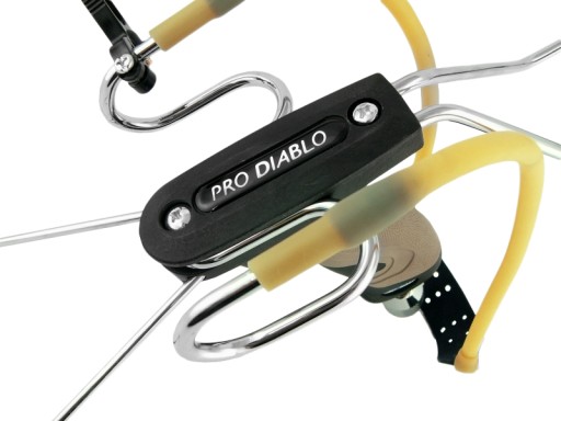 Slingshot Pro Diablo 2 — це найпрофесійніша далекобійна рогатка з безліччю сучасних рішень у нашій пропозиції. Він не тільки неймовірно потужний, але й стріляти з нього надзвичайно зручно. Система «Soft Touch» — це інноваційна конструкція рукоятки, яка м’яко та зручно лежить у руці, що дає можливість знімати годинами. Стабілізуюча опора і три передніх стабілізатора з вбудованою мушкою істотно підвищують зручність метання шариків і точність стрільби. Кучність – близько 40-50 метрів, а дальність пострілу куль з рогатки може досягати 200 метрів! Використана гума міцніша стандартної та більш стійка до розтягування. На його кінці знаходиться шкіряний кошик. На час транспортування передній стабілізатор можна розібрати, а ручку стропа можна скласти.