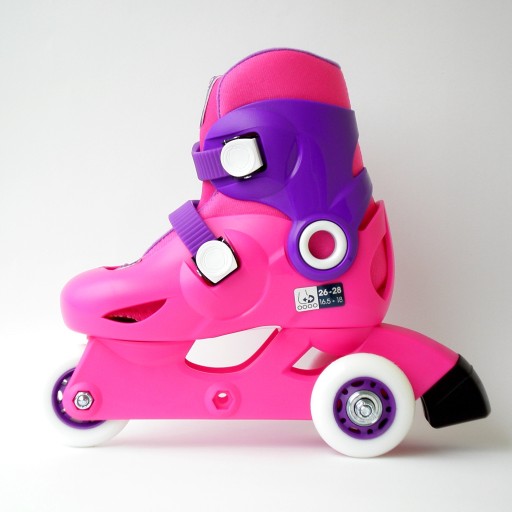 + Регулювання розміру за допомогою внутрішнього черевика в діапазоні номерів 26 - 27 - 28, приблизно 16,5 - 18 см - стопа росте, а разом з нею ростуть і роликові ковзани.