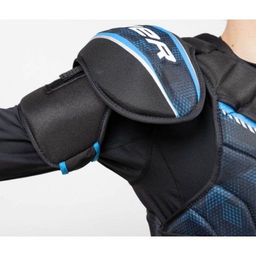 - Наплічні накладки Bauer X пропонують низькопрофільний протектор на всі плечі.