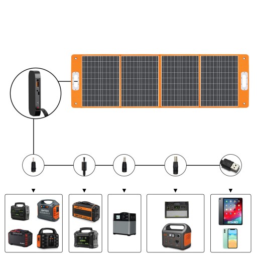 - Складна сонячна панель Flashfish 100 Вт призначена для більшості сонячних генераторів. Складна сонячна панель потужністю 100 Вт із кабелем DC5521 для зарядки Flashfish 300 Вт·год (продається окремо) і портативної електростанції ROCKPALS 250 Вт/300 Вт/350 Вт/500 Вт; І додаткові 4 порти (адаптер живлення постійного струму 8 мм для Goal Zero/Jackery, адаптер живлення постійного струму 5,5 x 2,5 мм для портативного генератора Suaoki та роз’єм 3,5 x 1,35 мм 6,3 x 3,0 мм).
