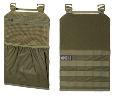 З одного боку полотнища розташована кишеня-сітка, що застібається на блискавку YKK, а знизу відкрита кишеня на гумці. З іншого боку є велика панель на липучці та ремені MOLLE/PALS. Використання липучок і стрічок дозволяє кріпити додаткове обладнання у вигляді мішків і лотків.