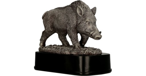 Дуже реалістична статуетка дикого кабана. Статуетка виготовлена з високоякісної смоли - ідеально підходить для індивідуальних нагород на мисливських змаганнях.