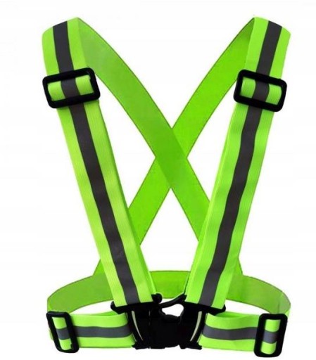 Завдяки широким світловідбиваючим смугам користувач добре помітний, а можливість регулювання вертикальних і горизонтальних смуг дозволяє добре підігнати шлею по фігурі.
