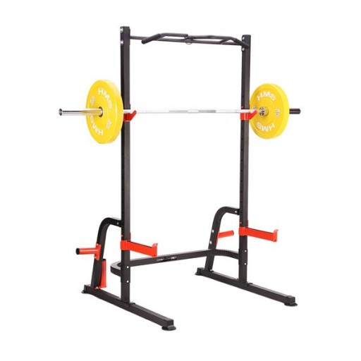 Багатофункціональна стійка PWS08 — це багатофункціональна тренувальна станція від HMS. Стійка оснащена тримачем для штанги і страховочними гачками, завдяки яким ви можете безпечно і самостійно виконувати силові тренування з додатковою вагою, а штангу і поручні можна використовувати для каленістичних тренувань, тобто з використанням власної ваги. Поручні також можна використовувати під час вправ із силовою лавою. Поручні, тримачі для штанг і безпечні гаки регулюються по висоті.