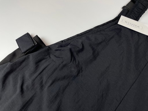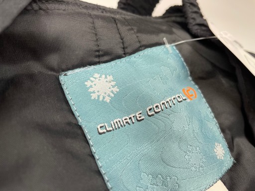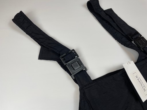 - Чорні снігові штани. Штани мають регульовані підтяжки. Застібається спереду на блискавку. Вони мають додаткові регулювання на талії на липучках. Внизу штанина застібається на блискавку і застібку, що полегшує надягання. Штани мають функціональні кишені на блискавці. Вони водонепроникні та дихаючі.