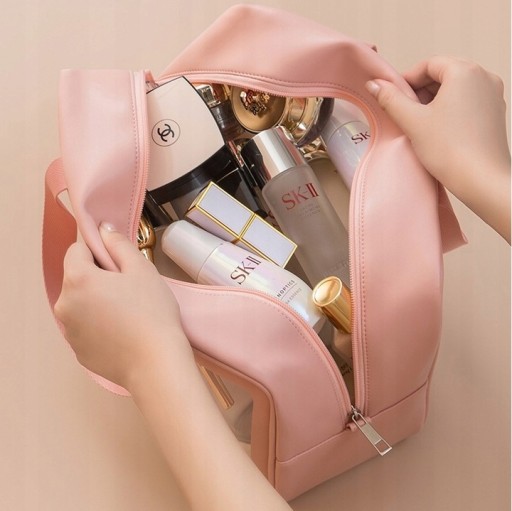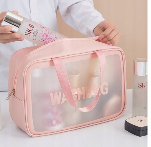 Стильна, практична косметичка з прозорою кришкою, ідеально підходить для подорожей, місткий салон вміщає набір найнеобхіднішої косметики та дрібні аксесуари.