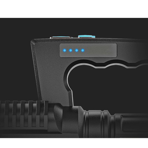 Ліхтарик має вбудовану, надзвичайно довговічну літій-іонну батарею. Час зарядки ліхтарика становить близько 4 годин, що дозволяє йому працювати на повну потужність до 8 годин! Зарядка проста, через USB. На бічній панелі ліхтарика показано рівень заряду батареї.