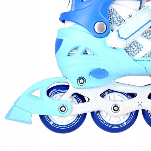М'які колеса гарантують хороше зчеплення з землею та добре поглинають усі коливання. Застібка черевика за допомогою двосекційної пряжки, липучок і шнурівки забезпечує максимальну безпеку під час їзди, а гальмо з найякіснішого ударостійкого ПП забезпечує безпечну зупинку навіть на відносно високих швидкостях.