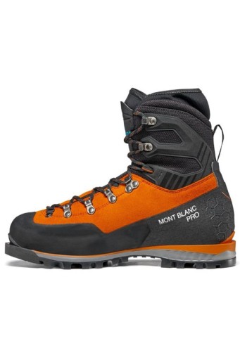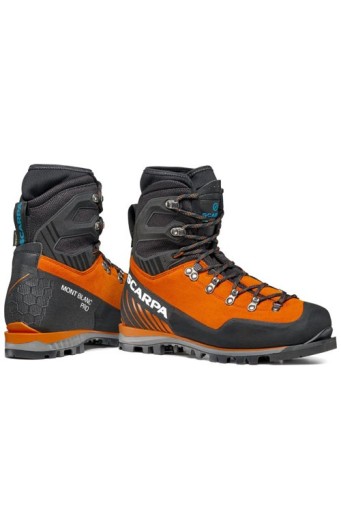 Mont Blanc Pro GTX — найуніверсальніше альпійське взуття, яке пропонує Scarpa. Це ідеально працює, серед іншого: під час підкорення гір взимку або на льодовиках. Відмінна якість і довговічність гарантуються двома факторами: професіоналізмом і великим досвідом взуттєвих майстрів Scarpa, а також використанням ретельно підібраного поєднання найсучасніших матеріалів, які використовуються для виробництва цієї моделі. Взуття має вдосконалену конструкцію Activ Fit, яка ідеально враховує анатомію стопи. Крім того, він сумісний з автоматичними та напівавтоматичними кошками.