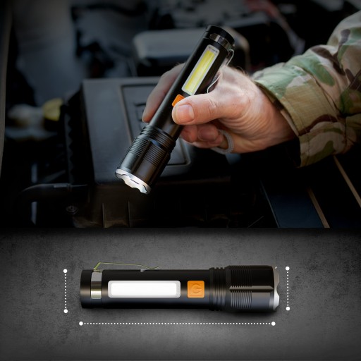 Портативний тактичний ліхтар Extralink з акумулятором і додатковим бічним ліхтарем