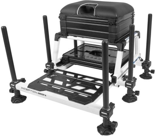 Побудована на дуже міцній і елегантній рамі, яка доступна в білому або графітовому кольорі, станція Inception має багато місця для зберігання. Глибокі бічні ящики з відсіками ідеально підходять для аксесуарів, а глибокі ящики зі знімними перегородками можна використовувати для довгих коробок або будь-яких великих аксесуарів. Між ящиками і сидінням є порожній неглибокий піднос, який ідеально підходить для зберігання лідерів. Касета під рамою містить піддон діаметром 26 мм і кришку, до якої при необхідності можна додати додаткові рівні. Всі ніжки в сидінні телескопічні, тому ви можете легко регулювати рівень.