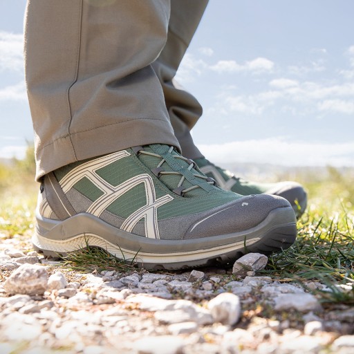 Легкі та міцні туристичні черевики від Haix, призначені для тривалого носіння на відкритому повітрі. Вони ідеально підходять для гірських стежок, експедицій по бездоріжжю або походів.