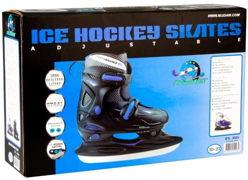 Регульовані хокейні ковзани Hardboot Nijdam швидкі та зручні. Відрізняються довговічністю і міцністю, відмінно витримують удари під час тренувань або змагань, полози з нержавіючої сталі гарантують довговічність протягом багатьох сезонів. Ковзани легко регулюються до чотирьох розмірів, тому ви можете використовувати їх кілька років!