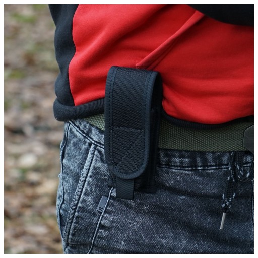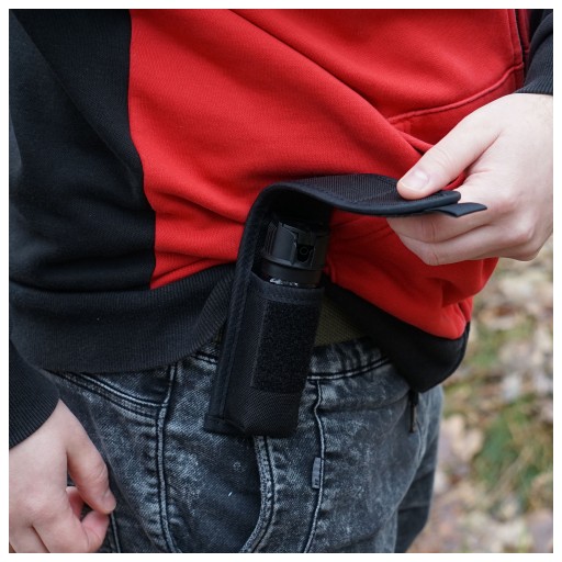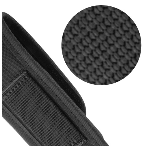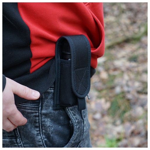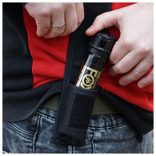 Велика кобура перцевий балончик LUX з високоякісного нейлону від польської компанії Holsters HPE Poland. Призначений для ручних газометів (RMG/RMP) ємністю від 50 до 80 мл. Адаптований за розміром до контейнерів висотою приблизно 10,5 - 13,0 см. Ширина балона не повинна перевищувати 38 мм для вільного відведення газу в стресовій ситуації, що вимагає раптової реакції.Корпус LUX виготовлений з міцного, ламінованого і жорсткого нейлону чорного кольору. Кобура застібається на липучку (55 х 35 мм) з ремінцем, який полегшує підйом клапана для негайного видалення газу з корпусу. Ззаду є петля (лямка), за допомогою якої ми можемо прикріпити кобуру до пояса. Максимальна ширина смуги не повинна перевищувати 55 мм.