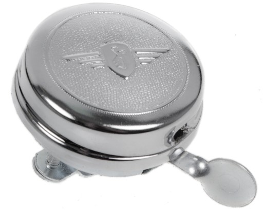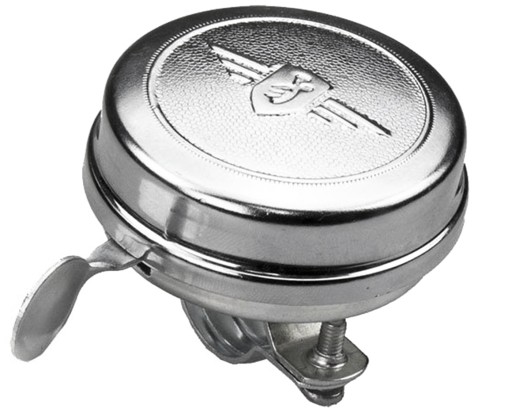 Класичний велосипедний дзвінок Verso з хромованої сталі з тисненням. Дзвін видає дуже чистий і гучний звук. Встановити дзвінок дуже просто. Підходить для керма багатьох діаметрів.
