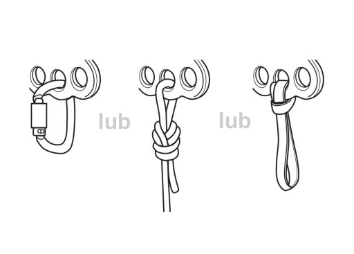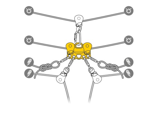 - можливість подвоїти систему за допомогою двох шківів REEVE, якщо мотузки розташовані досить близько, або приєднати шків до верхнього отвору, якщо мотузки розташовані далеко,