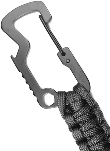 Окрім основної функції, металевий карабін також може служити зручною відкривачкою для пляшок і торцевим ключем (6 мм).