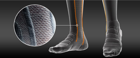 Вона виготовлена з тонкотканої сітчастої тканини. Він забезпечує достатню вентиляцію стопи та гомілки, зберігаючи шкіру сухою та комфортною. Це забезпечує виключно ефективне проведення повітря від самої основи носка вгору по внутрішній частині гомілки, так що навіть дуже тісне взуття не завадить вільному видаленню перегрітого і вологого повітря, щоб замінити його свіжим і приємно прохолодним. Суха шкіра ніг означає не тільки більший комфорт, але й зниження ризику появи неприємних потертостей і пухирів.