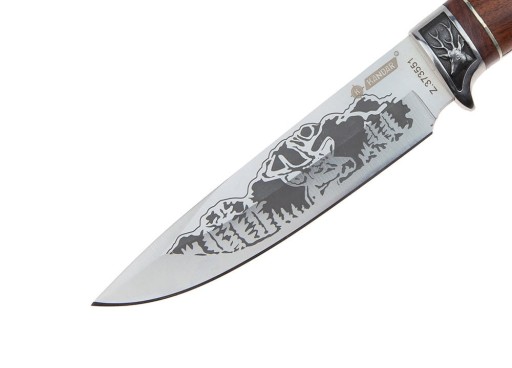 ✅ Лезо з двох сторін прикрашене зображенням оленя в гоні.