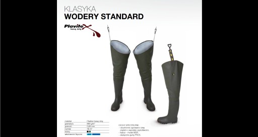 Водонепроникні вейдери з незнімно привареними якісними гумовими черевиками. Модель виготовлена з водонепроникної, міцної тканини Plavitex Heavy Duty. Розроблений спеціально для рибалок і рибалок для використання під час будь-якої риболовлі. Вони забезпечують ефективний захист ніг від води. Технологія двостороннього зварювання підвищує міцність швів.