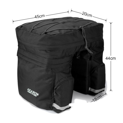 Багатофункціональна подвійна велосипедна сумка, кріпиться до багажника. Ідеально підходить для зберігання велосипедних інструментів, дрібних предметів, які знадобляться під час подорожі, одягу, карт або харчових продуктів.
