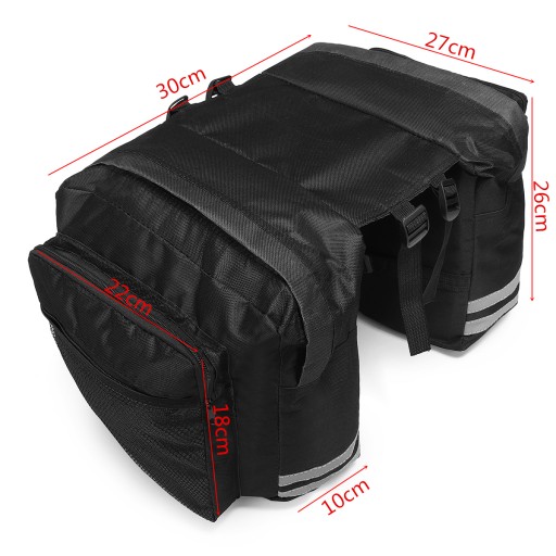 Багатофункціональна подвійна велосипедна сумка, кріпиться до багажника. Ідеально підходить для зберігання велосипедних інструментів, дрібних предметів, які знадобляться під час подорожі, одягу, карт або харчових продуктів.