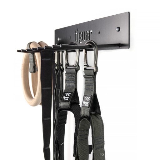 Ергономічна і зручна настінна вішалка, призначена для комерційного використання. Призначений для зберігання невеликих аксесуарів, як-от міні-ремінців, силових ременів, трубок, а також ременів для йоги, скакалок або ременів систем підвіски. Це допомагає створити вільний простір і зберегти порядок в кімнаті.