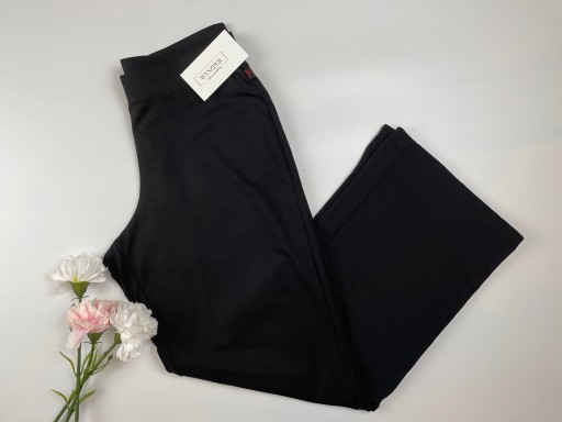 - Жіночі спортивні штани класичного чорного кольору. Мають прямий крій, вільні і широкі ноги. Вони виготовлені зі слизького, гнучкого матеріалу. Мають еластичну гумку та середню талію.