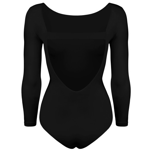 Оригінальний крій - боді має глибокий виріз на спині і тонкий пояс, що проходить по центру.
