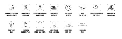 - Multi Cap-Strap - дозволяє використовувати як класичний ремінь (застібається зверху) і як Cap-Strap (застібається спереду взуття, що забезпечує ідеальну посадку та підвищує швидкість реакції)