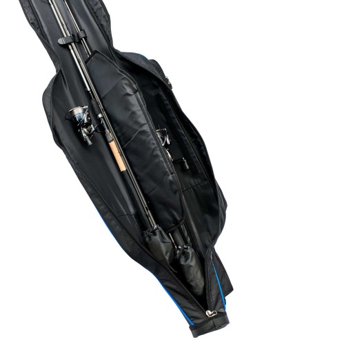 Посилена сумка для вудилищ з жорстким дном для 2-х оснащених вудилищ з котушками. Вудки можна розташувати всередині так, щоб котушки не стикалися і не пошкоджували одна одну, завдяки можливості регулювання фіксаторів, в які вставлено вудилище. Внутрішня перегородка запобігає подряпинам вудилища. Три зовнішні кишені для парасольок, змінні наконечники та підставки. Оснащений вшитим плечовим ременем і неопреновими ручками.