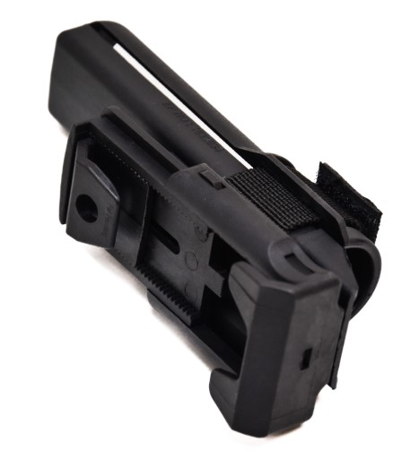 Це унікальна професійна пластикова кобура з можливістю обертання навколо власної осі (360°), яка відповідає вимогам професійних компонентів та їх використання. Кріпиться кобура класичним способом шляхом пропускання ремінця через пряжку кобури. Цю пряжку можна ідеально підігнати до розміру ременя за допомогою регульованого упору. Завдяки цьому естафету можна обертати на 360 градусів відносно пояса в 16 регульованих положеннях.