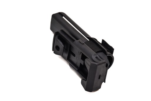 Це унікальна професійна пластикова кобура з можливістю обертання навколо власної осі (360°), яка відповідає вимогам професійних компонентів та їх використання. Кріпиться кобура класичним способом шляхом пропускання ремінця через пряжку кобури. Цю пряжку можна ідеально підігнати до розміру ременя за допомогою регульованого упору. Завдяки цьому естафету можна обертати на 360 градусів відносно пояса в 16 регульованих положеннях.