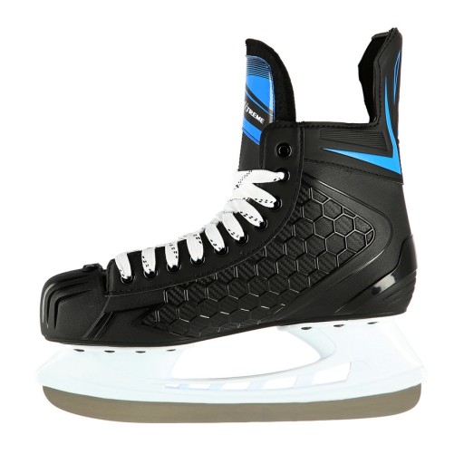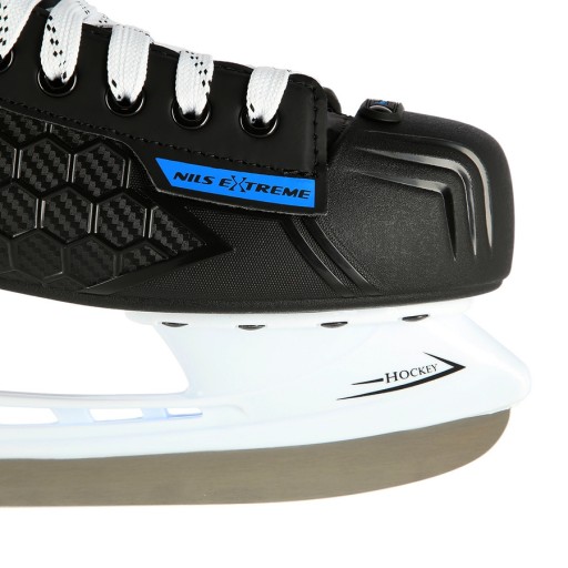 NH8588 Nils Extreme - хокейні ковзани, призначені для користувачів середнього рівня. Перш за все, хокейні ковзани повинні бути міцними та витривалими, щоб відповідати вимогам динамічної хокейної гри. Тому ковзани Nils Extreme виготовлені з дуже міцного пластику та посилені твердим корпусом. Таке рішення гарантує довговічність і додатково захищає стопу від можливих травм. Внутрішній матеріал взуття добре адаптується до форми стопи, забезпечуючи як високий комфорт використання, так і захист стопи від втрати тепла. Полози ковзана виготовлені з високоякісної нержавіючої сталі, яка має дуже хороші ходові властивості та дозволяє довго та безпечно використовувати. Шнурівка, яка використовується в цій моделі, забезпечує щільне прилягання взуття до ноги, що гарантує стабільність. NH8588 Nils Extreme - відмінний вибір для любителів катання будь-якого віку.