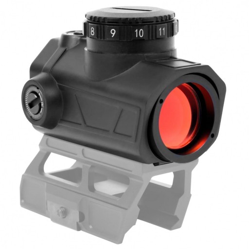Приціл має приціл у вигляді червоної точки розміром 2 МОА, що ідеально підходить для динамічної та точної стрільби. Точка має загальний діапазон налаштування до 70 MOA, а її положення можна змінити за допомогою відкритих турелей зі значенням клацання 0,5 MOA. Dot має 9 налаштувань яскравості для зйомки вдень (або в приміщенні) і 2 налаштування для роботи з нічним баченням.