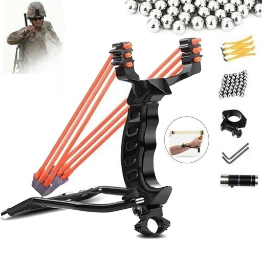 - регульована підставка для зап'ястя і рогатка із золотистими пропорціями, складна рогатка, зручна у використанні та транспортуванні, з тримачем для лазерного ліхтарика, дозволяє влучно полювати навіть вночі;